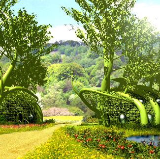 Fab Tree Hab představuje růst domů z živých domorodých stromů, které jsou prefabrikovány s využitím opakovaně použitelných lešení (konstrukčních šablon). Lešení jsou zpracovány v CAD na 3D tiskárnách a mohou být snadno dodávány a sestavovány tak, aby vyhovovaly místním druhům stromů a dřevin. Prefabrikované lešení řídí dočasně vegetativní vývoj a roubuje dřeviny do požadovaného tvaru: